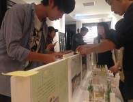 展示台も学生たちの手で!ということで、台のペンキ塗り作業に有志が取り組みました。