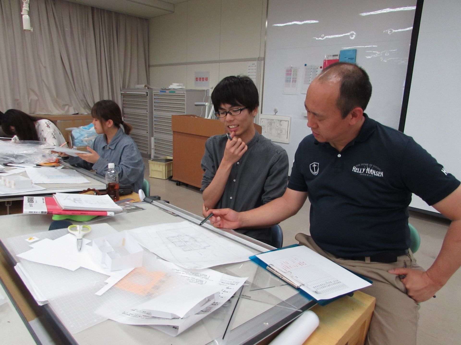 例年通り、各空間の寸法感覚がまだ甘い、従来の固定観念が強い、やりたいことに対する考えの追究が不十分など、初めての自主設計課題ならではの問題が多く見られたようですが、各人が先生方にやろうとしたことややりたいことを一所懸命に伝える姿が印象的でした。