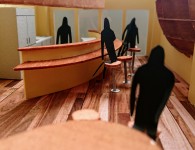 2年生の前期科目「空間表現演習A」で「ワールド・カフェ」をテーマに、 マンションの一室をカフェにリノベーションする課題に取り組み、後期科目「インテリアデザイン演習」と連携してインテリア模型を作成しました。
