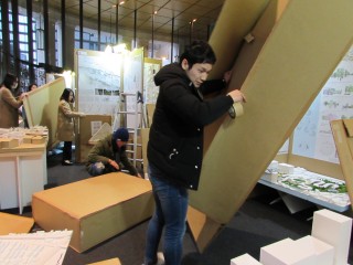 ポスターパネルや模型の片付け(運搬用の箱の再構築)をして…