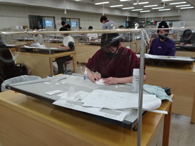 スチレンボードをカットしていき、カットした素材を組み立て、模型作成を進めていきます。