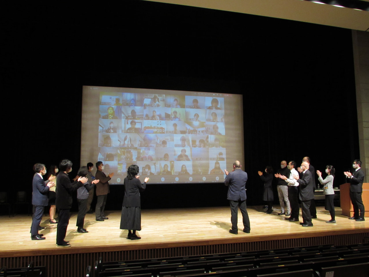 白鳥先生の音頭で、Teamsの向こうの人たちと自然に輪を作る形で最後に大阪締めを行いました。