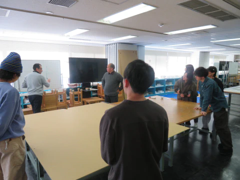 ポスターを展示するための段ボールパーティションも到着していて、いよいよデザイン工房で準備作業が始まりました。